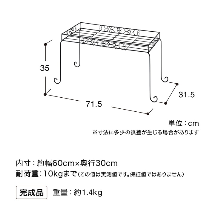 | 備考 : | [内寸]約幅60cm×奥行30cm[耐荷重]10kgまで(この値は実測値です。保証値ではありません。) |