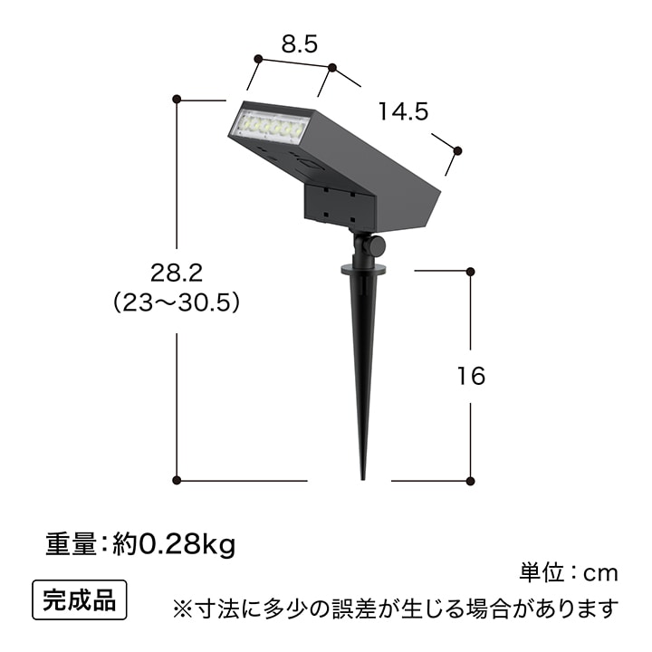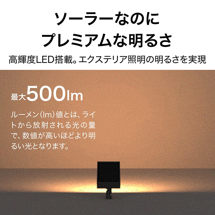 | 備考 : | [使用環境]屋外[LED色]電球色(3000K) [LED数]6球[電池種類]リチウムイオン充電池18650 3.7V 2000mAh ON/OFFスイッチ付き[付属品]専用スパイク1本(高さ:約16cm) 電池交換不可 [全光束]最大500lm 1年保証 |