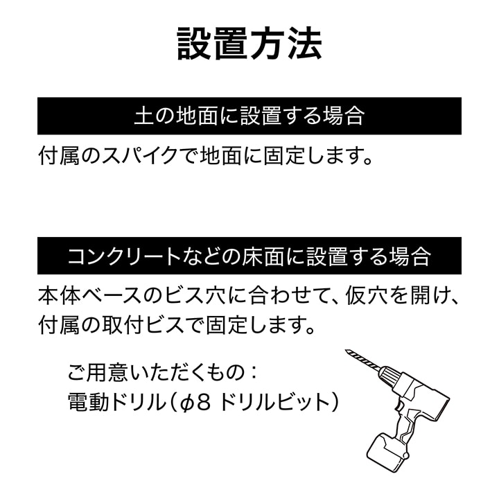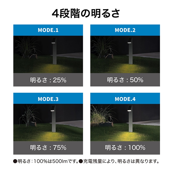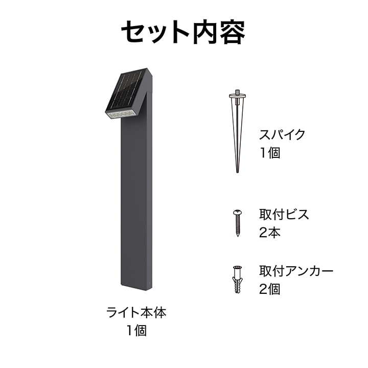 | 備考 : | [使用環境]屋外[LED色]電球色(3000K) [LED数]6球[電池種類]リチウムイオン充電池18650 3.7V 2000mAh ON/OFFスイッチ付き [付属品]専用スパイク1本(高さ:約16cm)、取付ビス2本、取付アンカー2本 電池交換不可 [全光束]最大500lm 1年保証 |